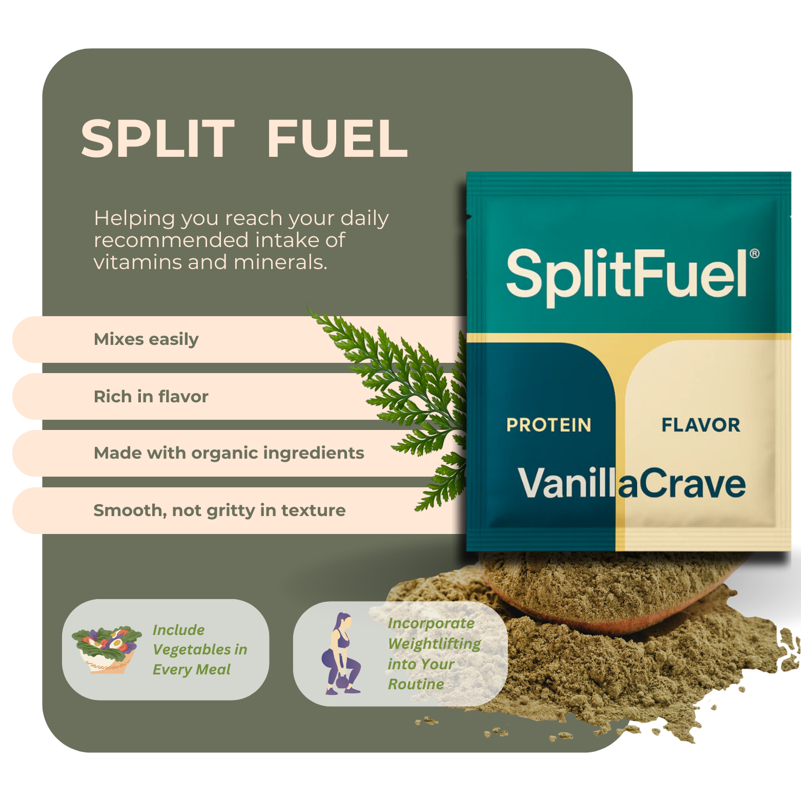+Split Fuel Protein Powder is a clean, high-quality protein blend designed for quick mixing and optimal performance. Packed in convenient single-serve packets, it's perfect for fueling your workouts, busy days, or travel.